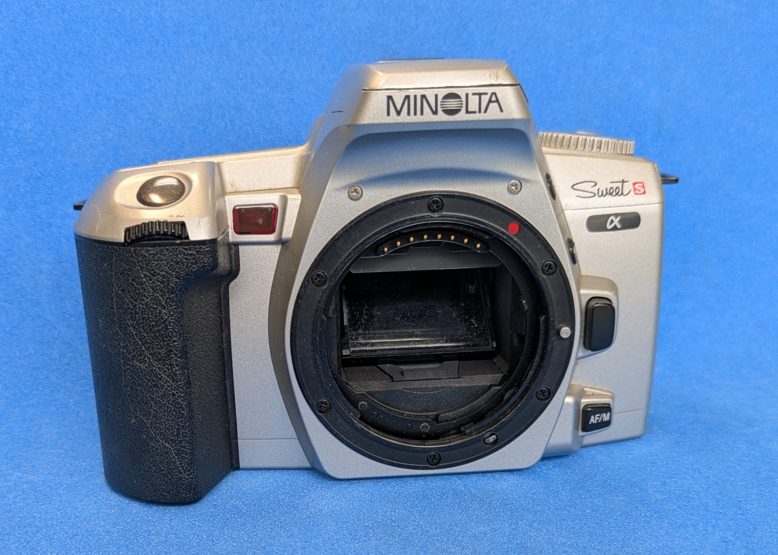 ミラーが上がったままです。 おそらく、ミラーUP機構の故障です。 他、シャッターの作動不良です。